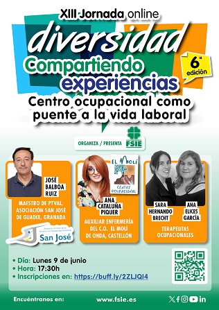 FSIE organiza una nueva jornada online sobre el sector discapacidad el lunes 9 de junio a las 17:30 horas. El tema es el centro ocupacional como puente a la vida laboral con...